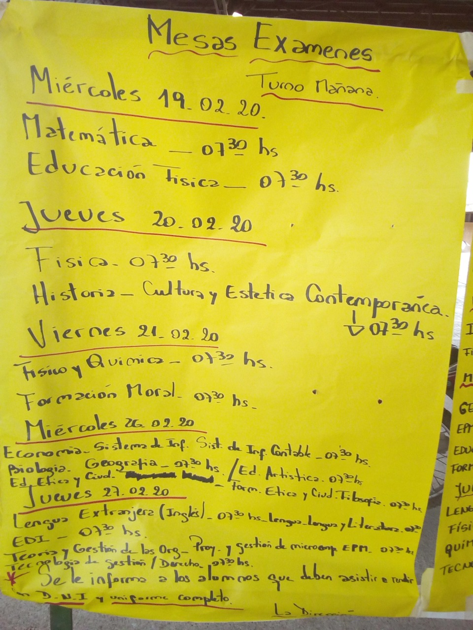 EXÁMENES 2020 ( TURNO MAÑANA Y TARDE)